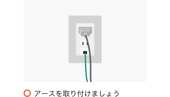 - 洗濯機、冷蔵庫、エアコン、電子レンジ等、水気や湿気の多いところで使う機器には、あらかじめアースを取り付けましょう。