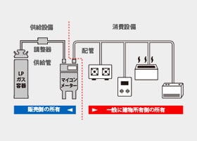 The division of ownership of gas facilities for LP gas, city gas and community gas is stipulated by legislation.
