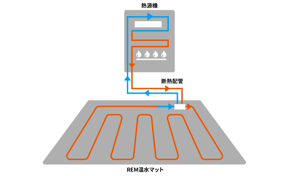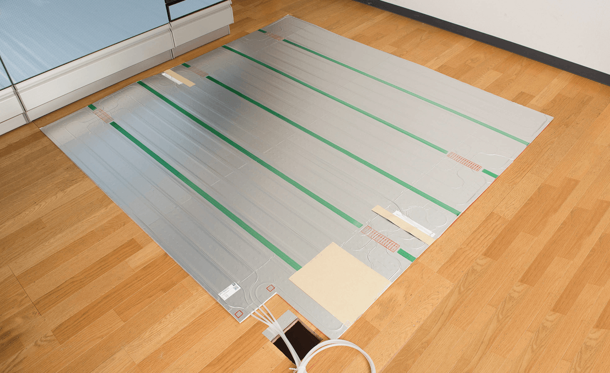 既存の床に床暖房の温水マットを置くことで設置できるため、床をはがす大きな工事が不要です。