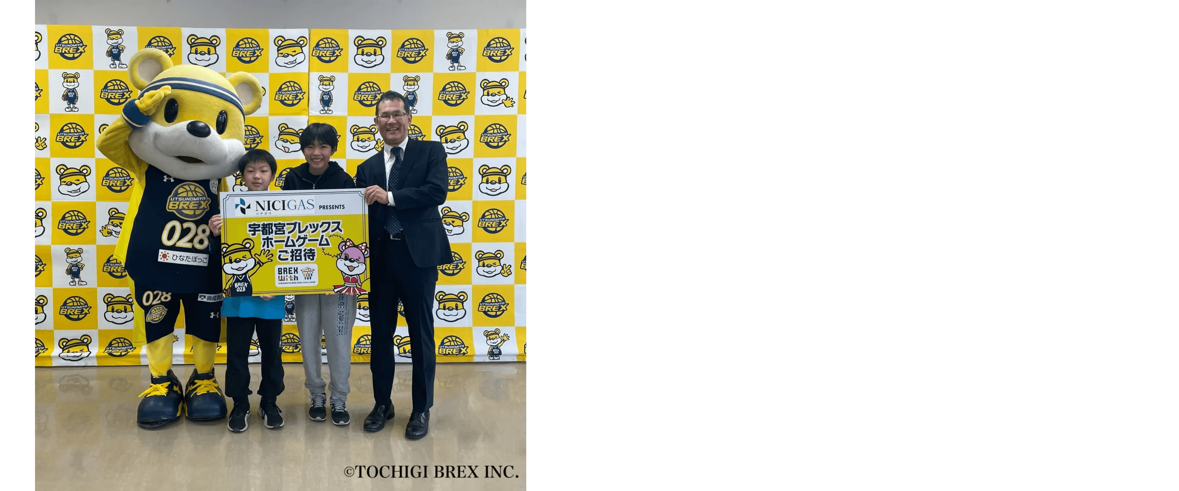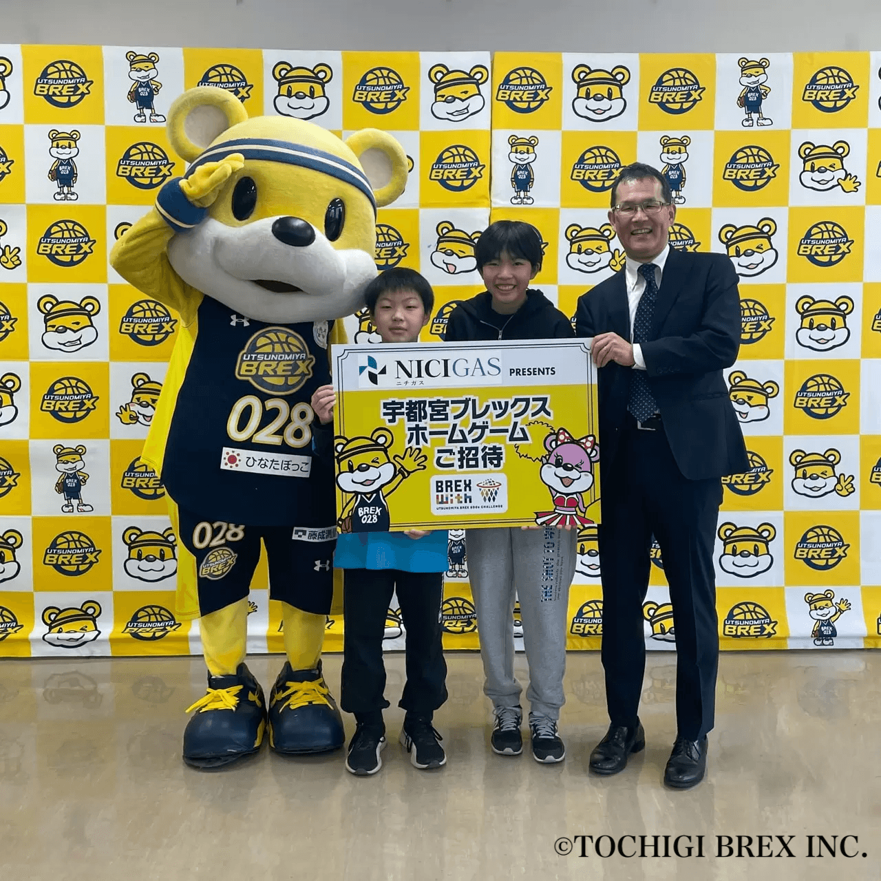Utsunomiya Brex, a professional basketball team that NICIGAS official sponsors, is promoting "BREX with" as a project to address the Sustainable Development Goals (SDGs). As a sponsor of this project, we contribute to the local community by donating basketballs to local elementary school mini-basketball clubs and inviting them to BREX home games. In November 2024, NICIGAS began offering the Brex Gas Denki Plan, in which a portion of gas and electricity bills are used to cover the operating and training expenses of the team. NICIGAS is committed to promoting sports and contributing to community development through energy supply initiatives.
