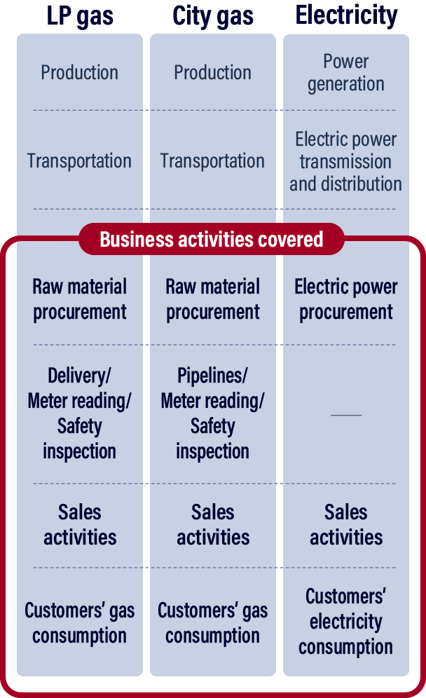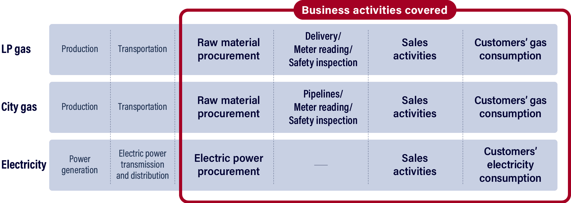 Within the energy supply value chain, we cover the procurement of energy imported from overseas in Japan and our sale to customers. As such, our business activities covered everything from raw material procurement to customers’ consumption.
