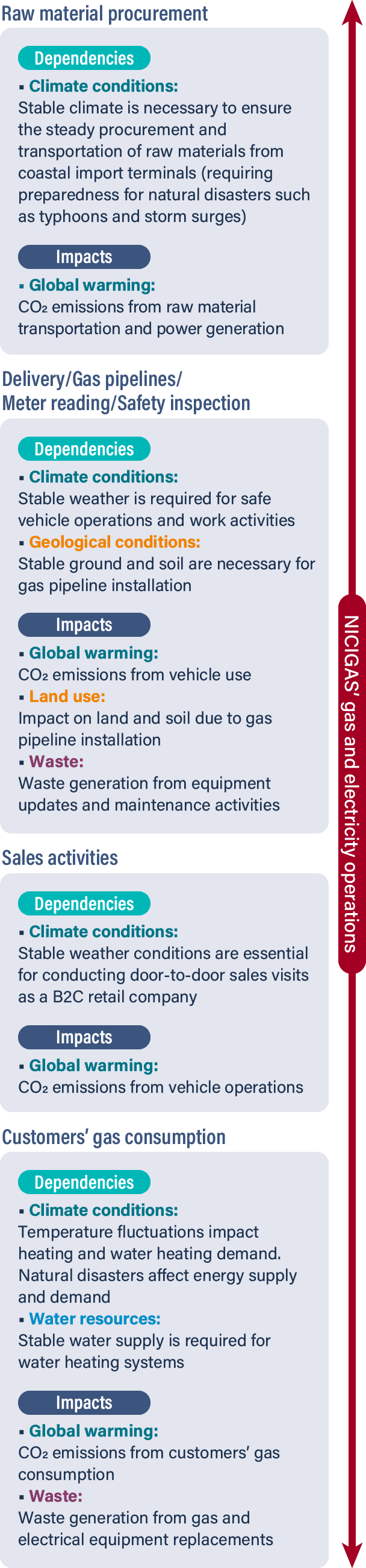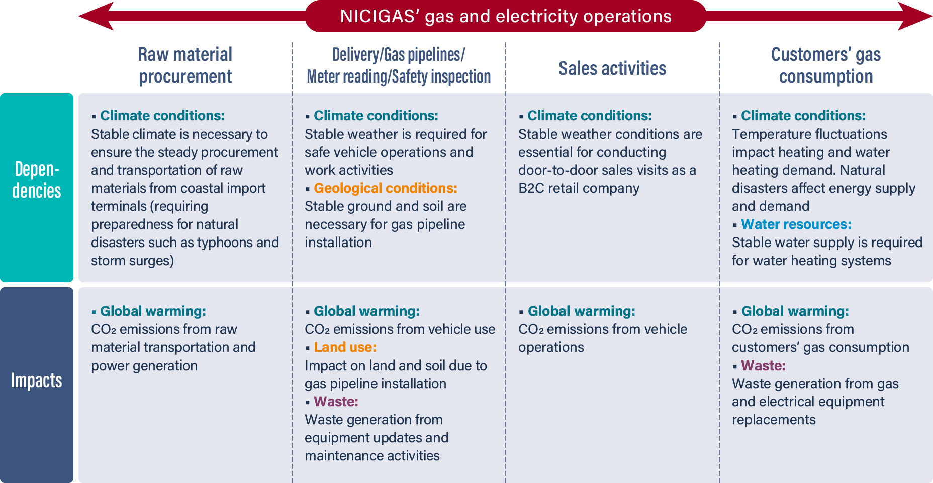 Relationship between NICIGAS’ business and natural capital dependencies and impacts