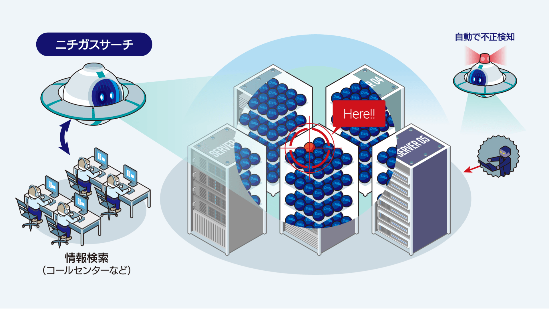ニチガスサーチは、ニチガスが開発した検索システム。複数のシステムを横断して検索をかけることができるので、異なる部門、会社間でも情報の一元管理・対応が可能になります。
