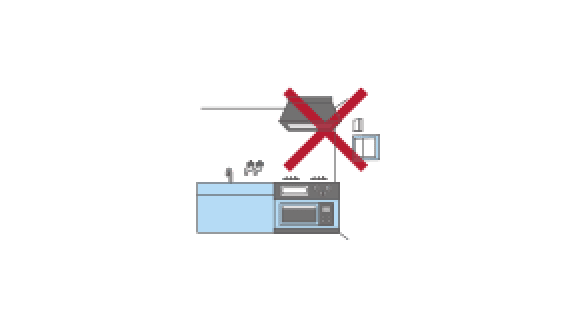 ドア付近など風通しの良い所や、食器棚などの上部(気流の流れがさまたげられるところ)は避けましょう。