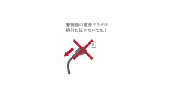 警報器は電源が入っていないと作動しませんので、電源プラグは常時コンセントに差し込んでおきましょう。