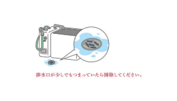 浴そう水の排水時、洗濯機からの排水時には、特につまりにご注意ください。