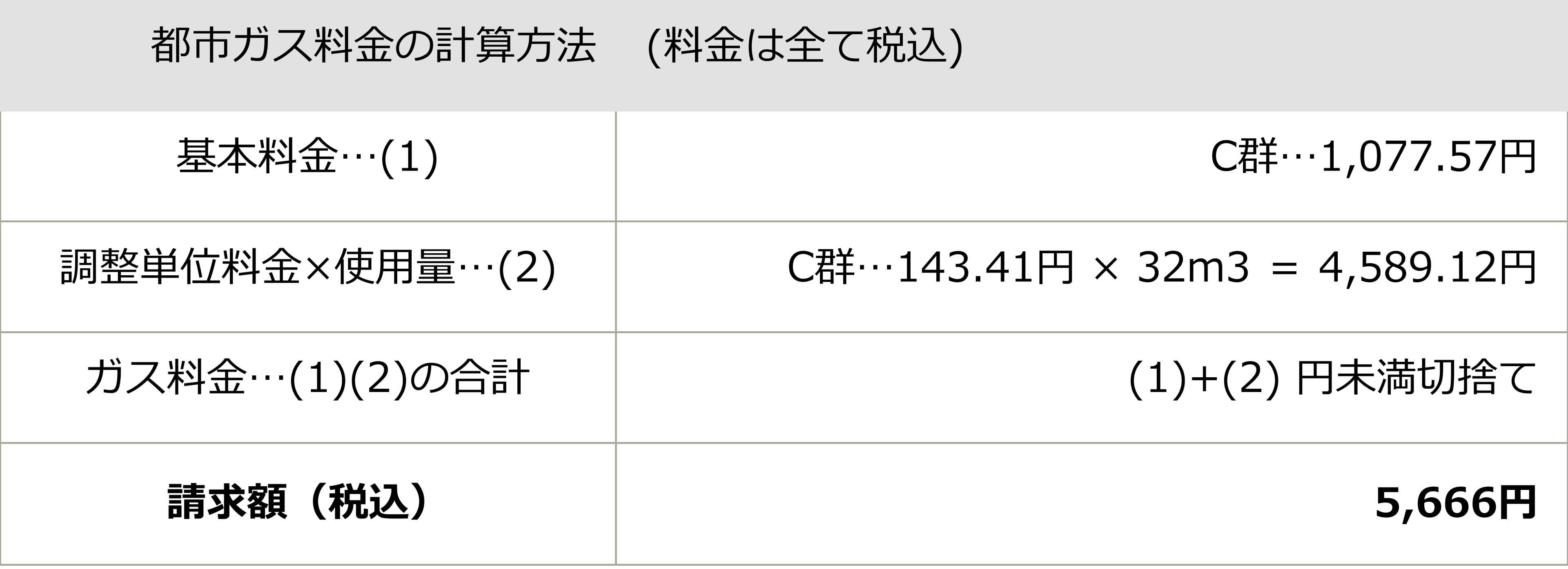 ガス料金=基本料金+(単位料金±原料費調整額)×使用量(m³)