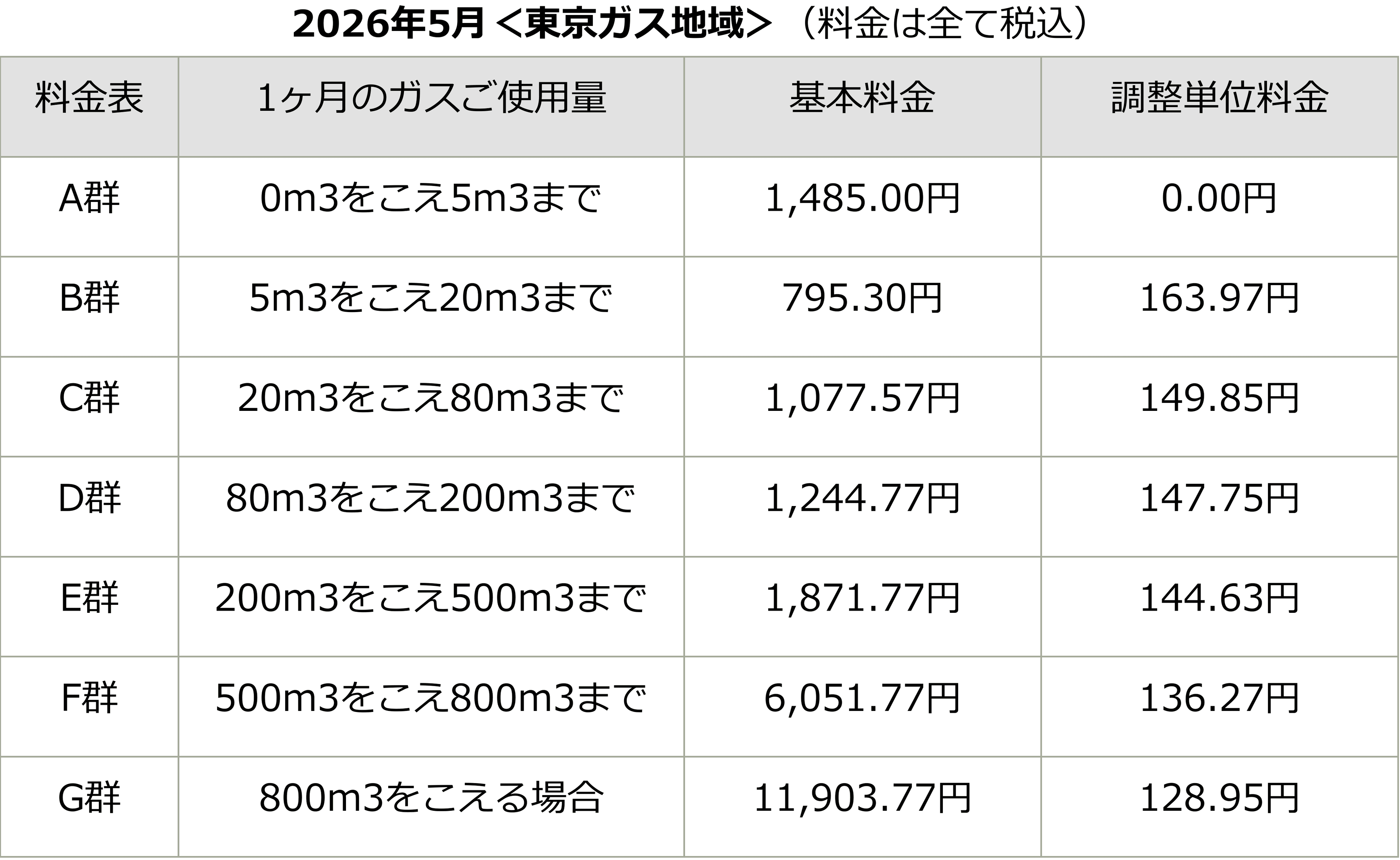 ※料金表Aについては原料費調整はおこないません。