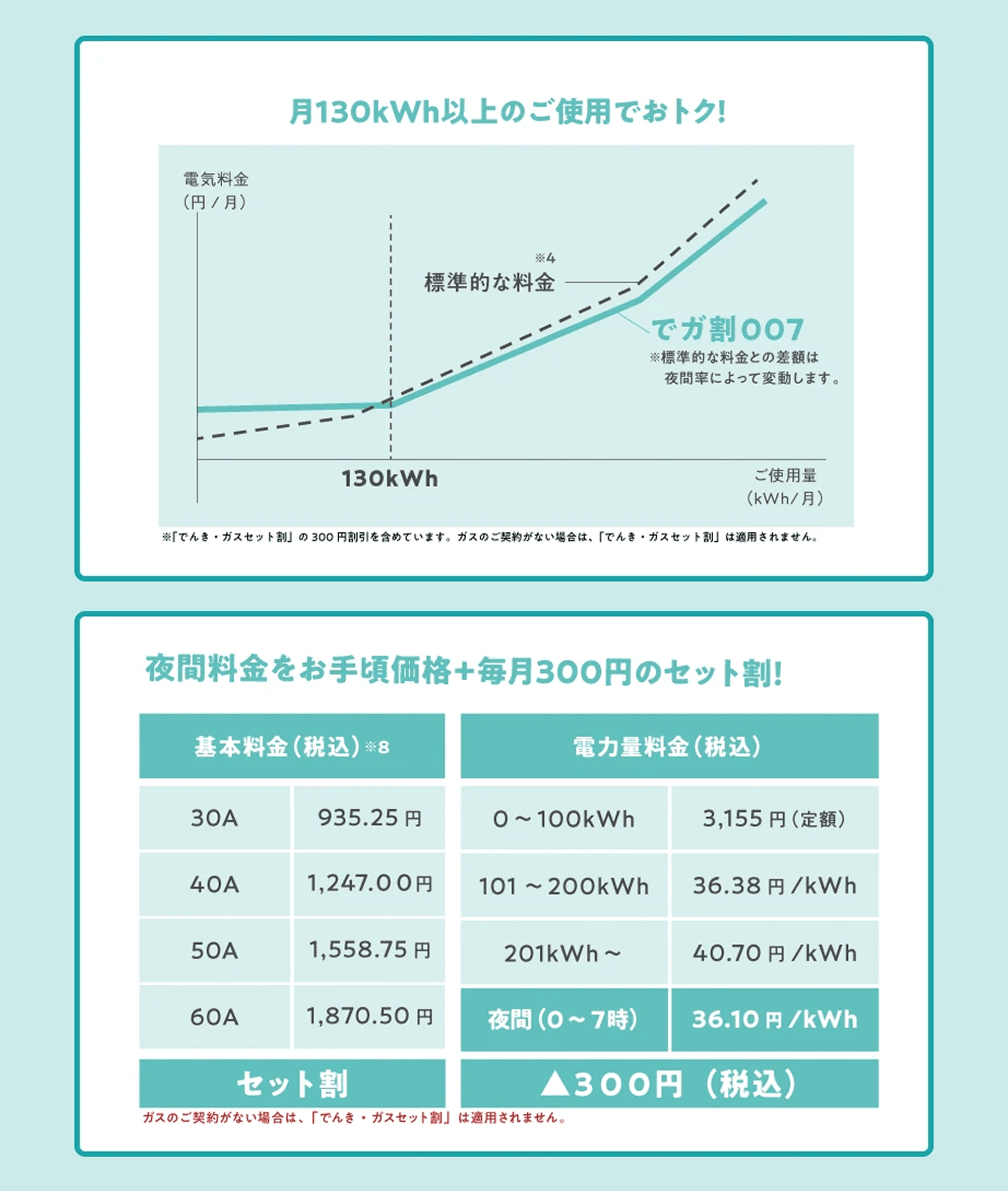 月の使用量130kwh以上のご使用量であれば、基本的におトクとなるプランです。