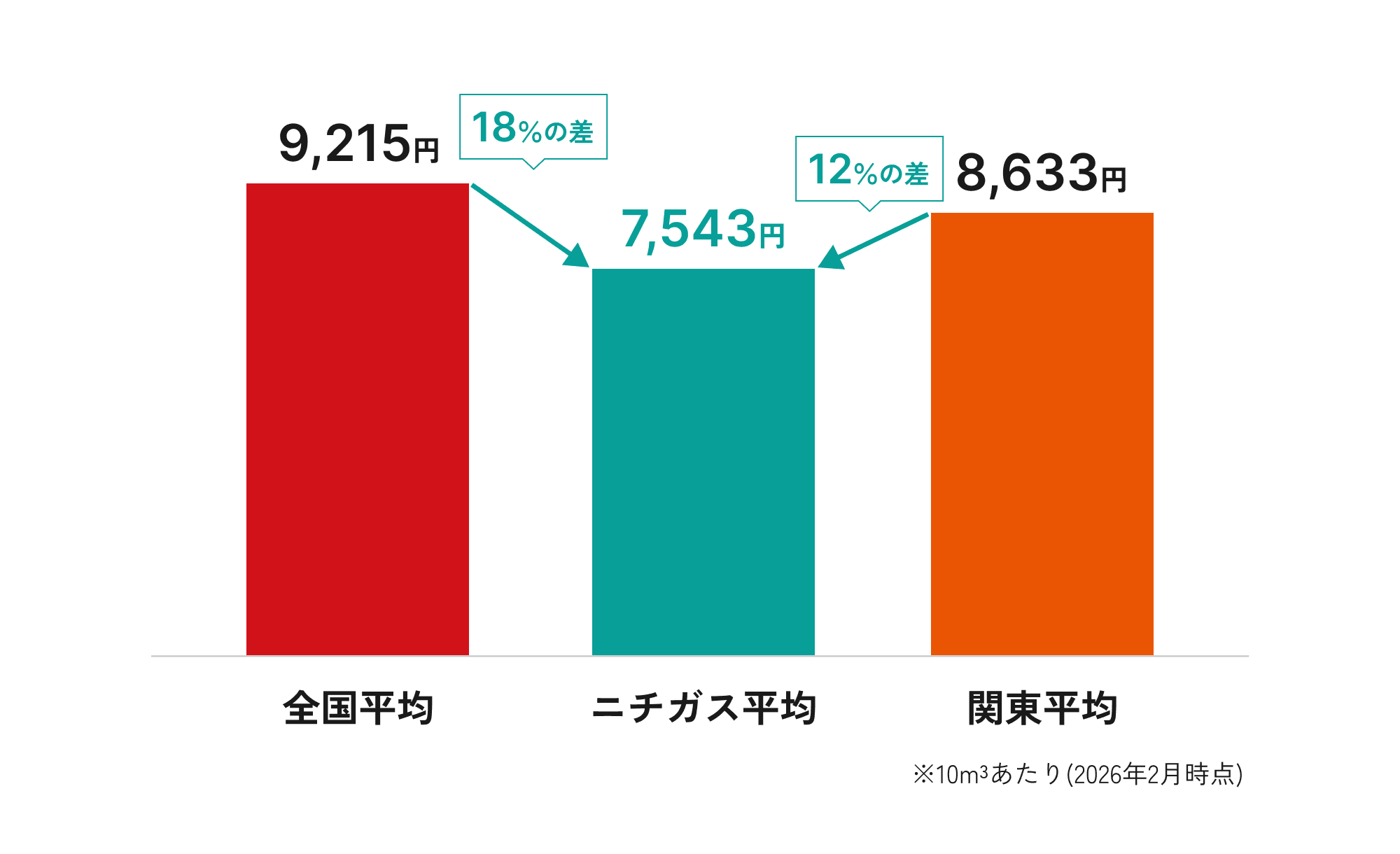 | 全国平均 円/10㎥ | 関東平均 円/10㎥ | ニチガス平均 円/10㎥ | |