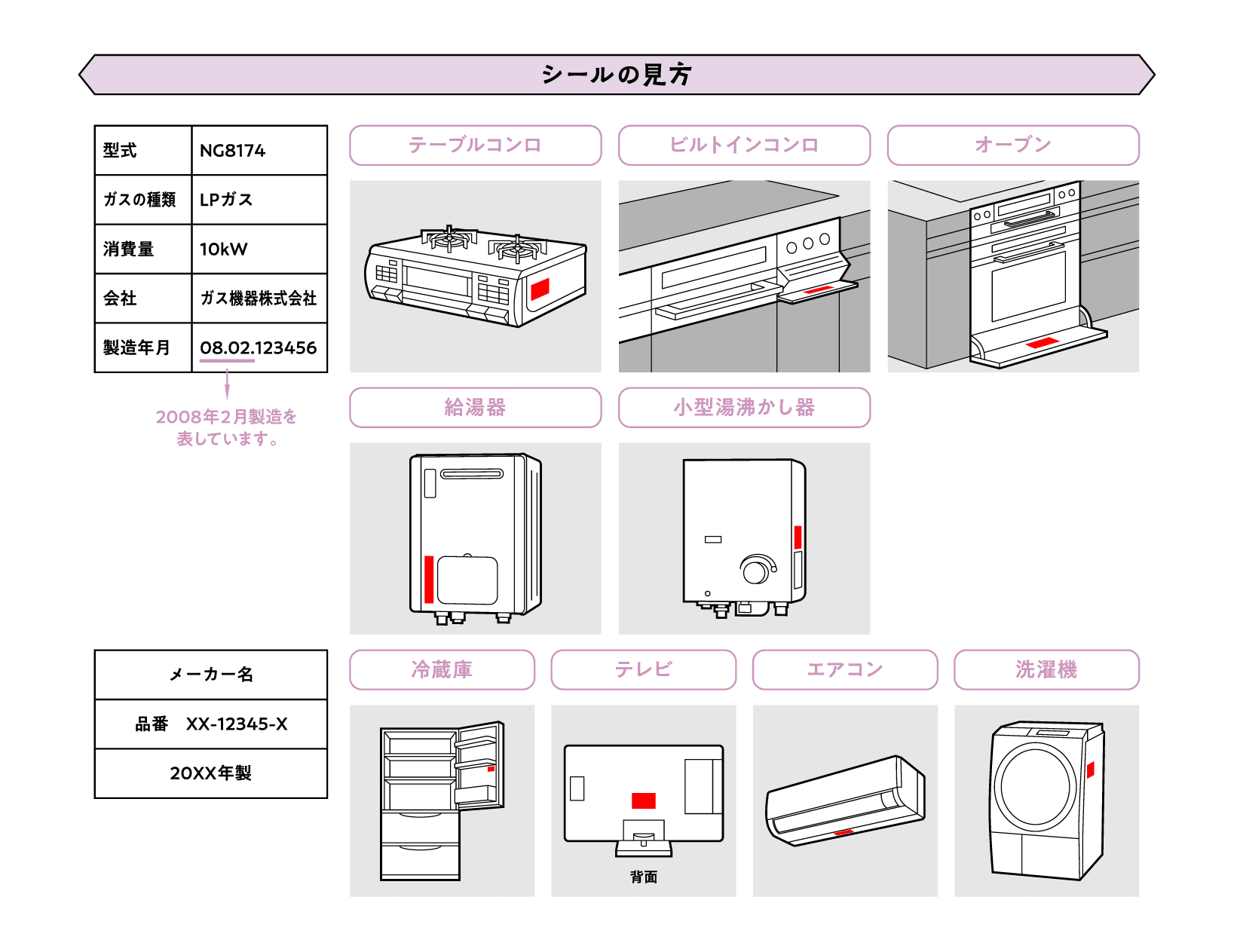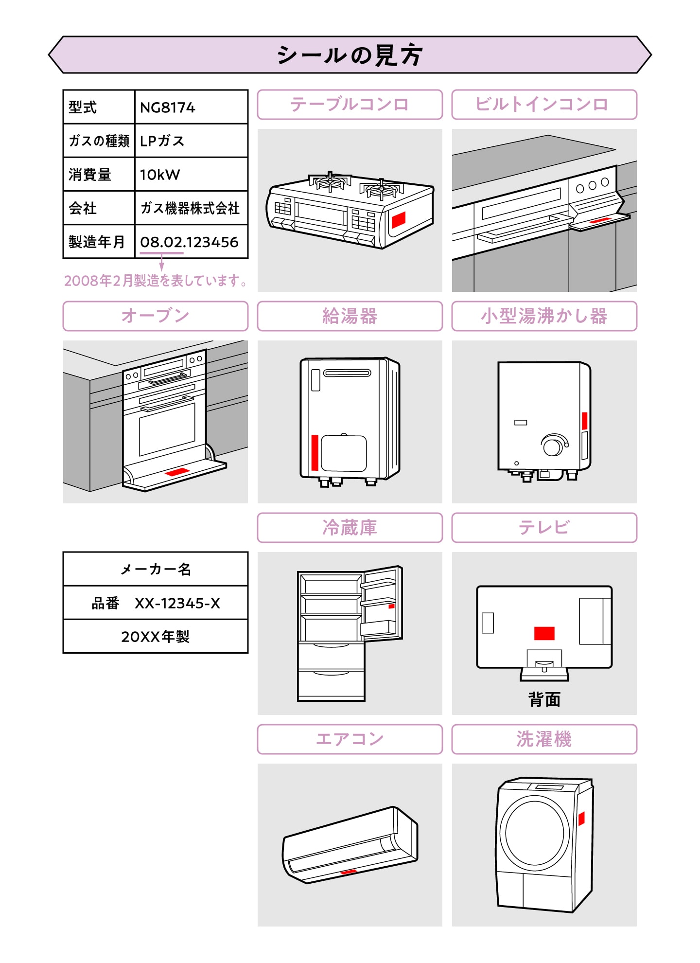 製造年月は、各機器にこのように表示されています。