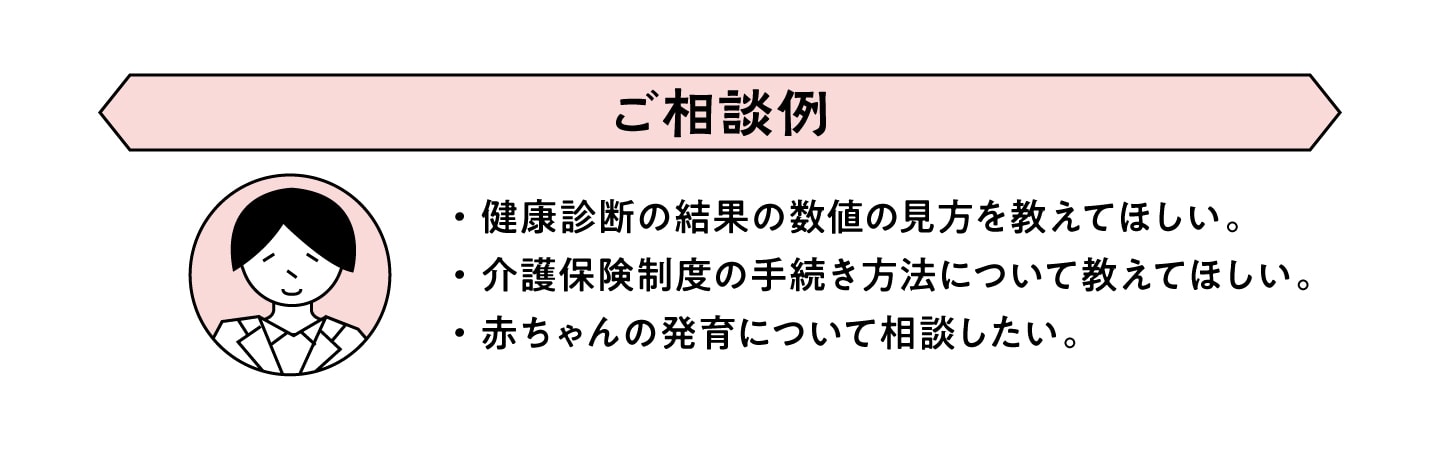 健康・介護・育児・メンタルヘルスのご相談について、医師や看護師・ケアマネージャー・心理カウンセラーなどの専門スタッフが、24時間・年中無休で対応いたします。