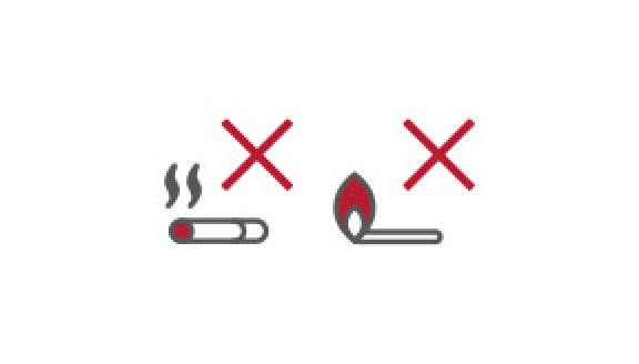 室内の火は全部消し、マッチをすったり、タバコを吸わないでください。