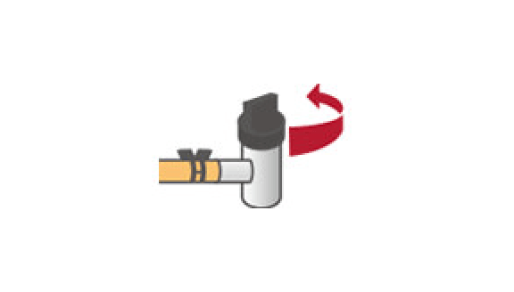 災害の時に容器バルブを閉めることは、二次災害の防止にも役立ちます。容器バルブを閉めるときは、時計と同じ右に回すと閉まります。