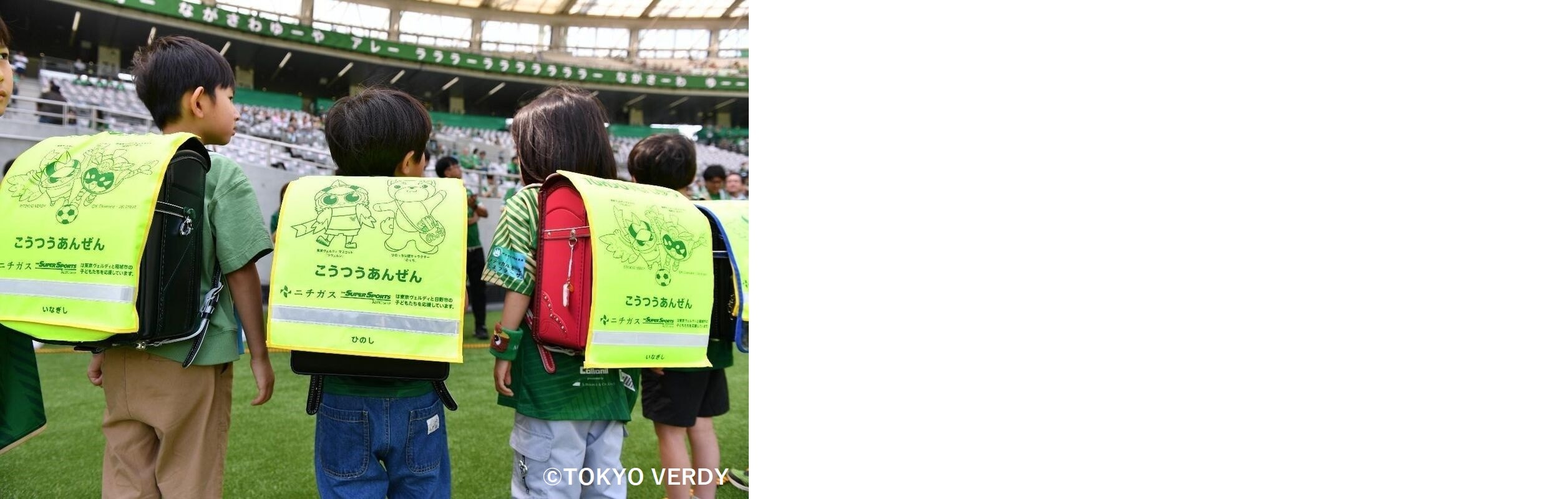 東京ヴェルディ、日テレ・東京ヴェルディべレーザとのパートナーシップを通じて様々な活動を展開し、ファン・サポーターや地域の皆さまとの関係を強化しています。具体的には、ファン・サポーターの方を対象に年2回の遠方試合観戦バスツアーを開催、2020年度から6年連続で小学校へランドセルカバーを寄贈などを実施しています。こうした活動への共感から、ガス・電気料金の一部がチームの運営費、強化費に充てられるヴェルディガスでんきの加入も増え続け、現在は約2万2千人の方にご利用いただいています(2026年3月時点)。